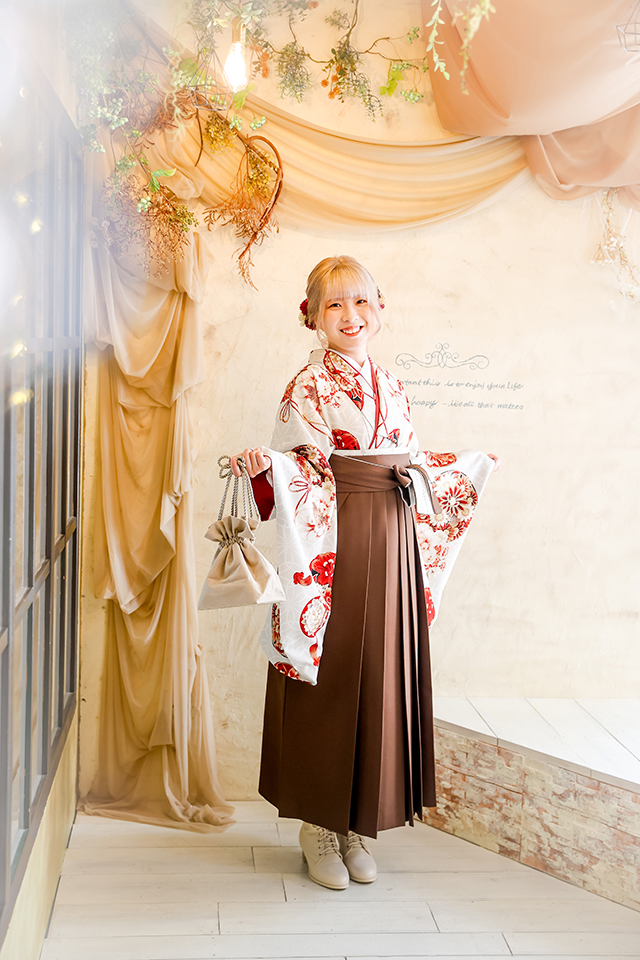 松戸市のフォトスタジオ「卒業袴館松戸店」の「卒業袴レンタル前撮りプラン」でお撮りしたお写真です。