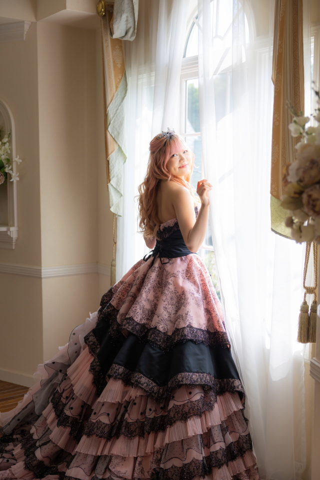 とお嬢様。ピンクとブラックのデザインがお嬢様にぴったりの1着。