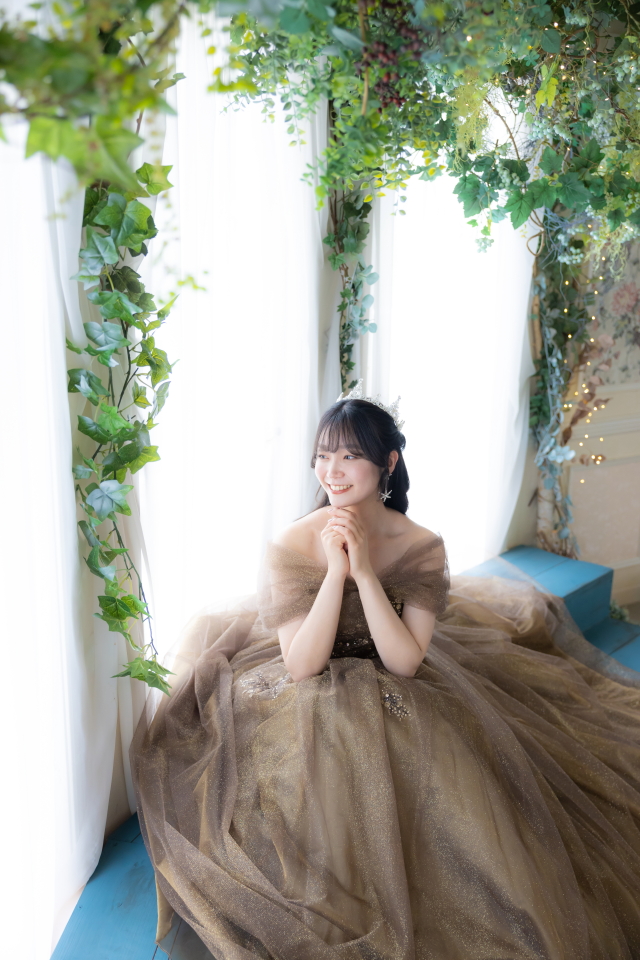 ドレスは「キラキラがすごくかわいい」「せっかくだから普段着ない色で」とお選びになりました。