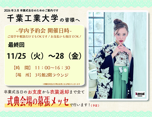 卒業式当日は式典会場内でお仕度させていただきます。